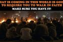 WHAT IS COMING IN THIS WORLD IS GOING TO REQUIRE YOU TO WALK IN FAITH: MAKE SURE YOU HAVE IT!