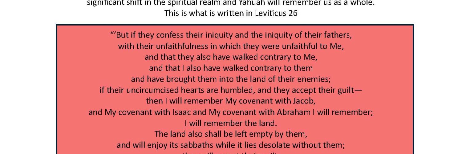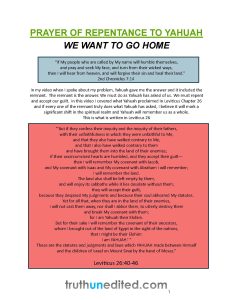 In my video when I spoke about my problem, Yahuah gave me the answer and it included the remnant. The remnant is the answer. We must do as Yahuah has asked of us. We must repent and accept our guilt. In this video I covered what Yahuah proclaimed in Leviticus Chapter 26 and if every one of the remnant truly does what Yahuah has asked, I believe it will mark a significant shift in the spiritual realm and Yahuah will remember us as a whole. Attached below is the prayer. Click the image to download PDF.