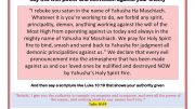 In the Encouragement video for 1-22, we rebuked satan and his attempts against you. I have provided these words for you to repeat any time you feel the enemy coming against you. I pray this helps you and brings you more strength and cancels out the enemy in your life! Be blessed!